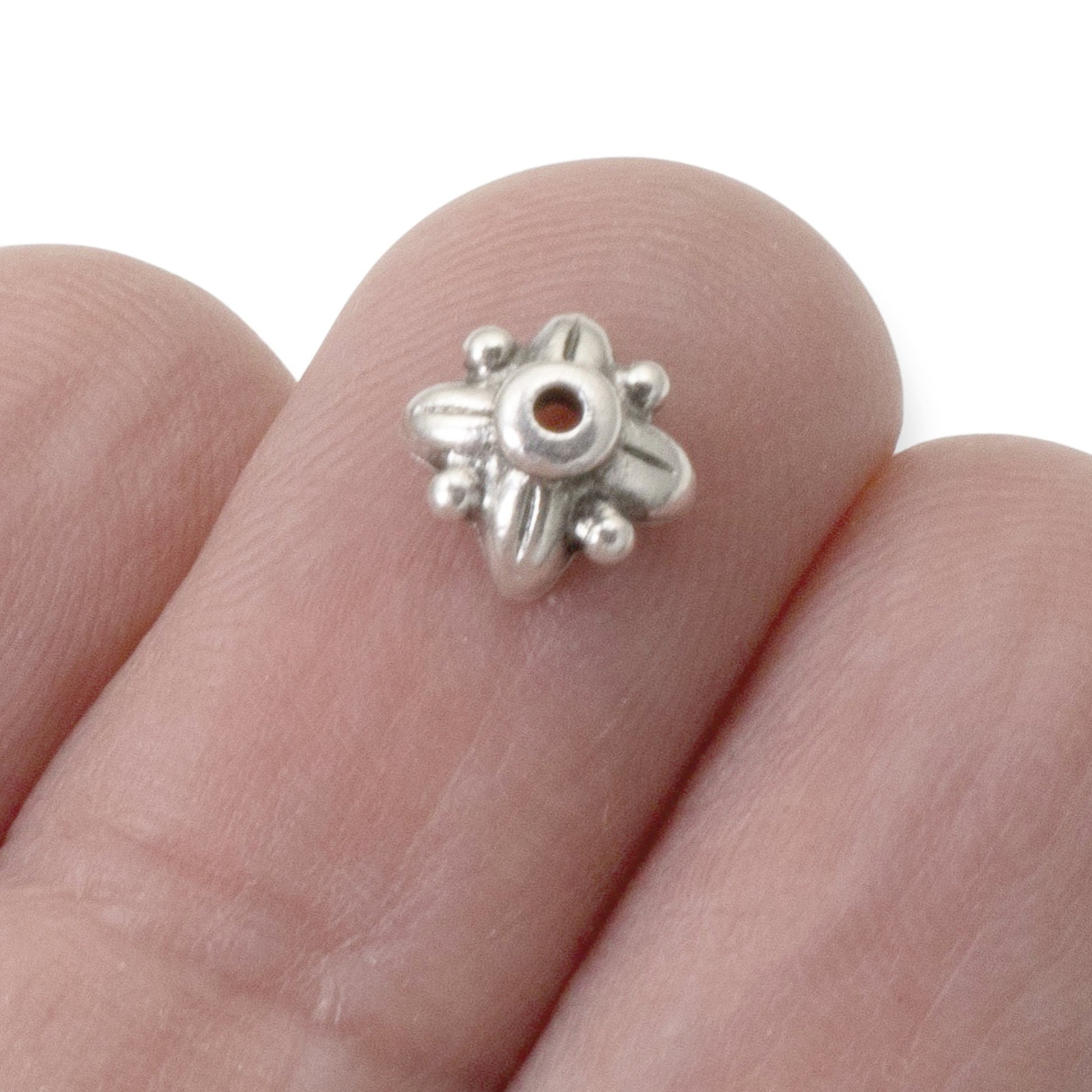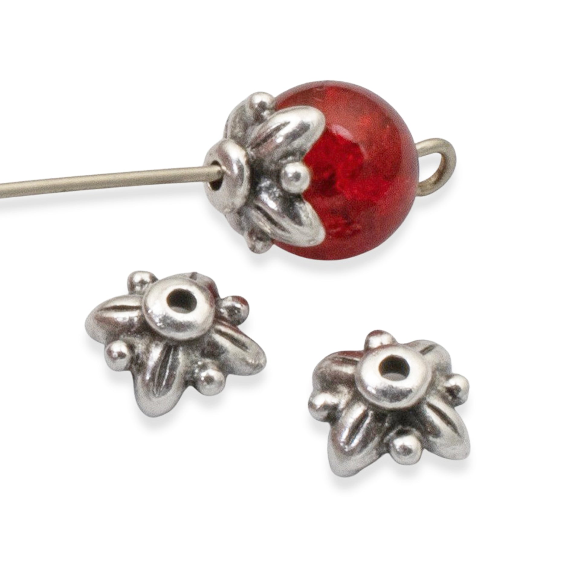 These beautiful bead caps combine the durability of lead-free pewter with the elegant appearance of .999 fine silver plating, enhanced with an artisan antique oxidized finish that highlights every intricate detail.