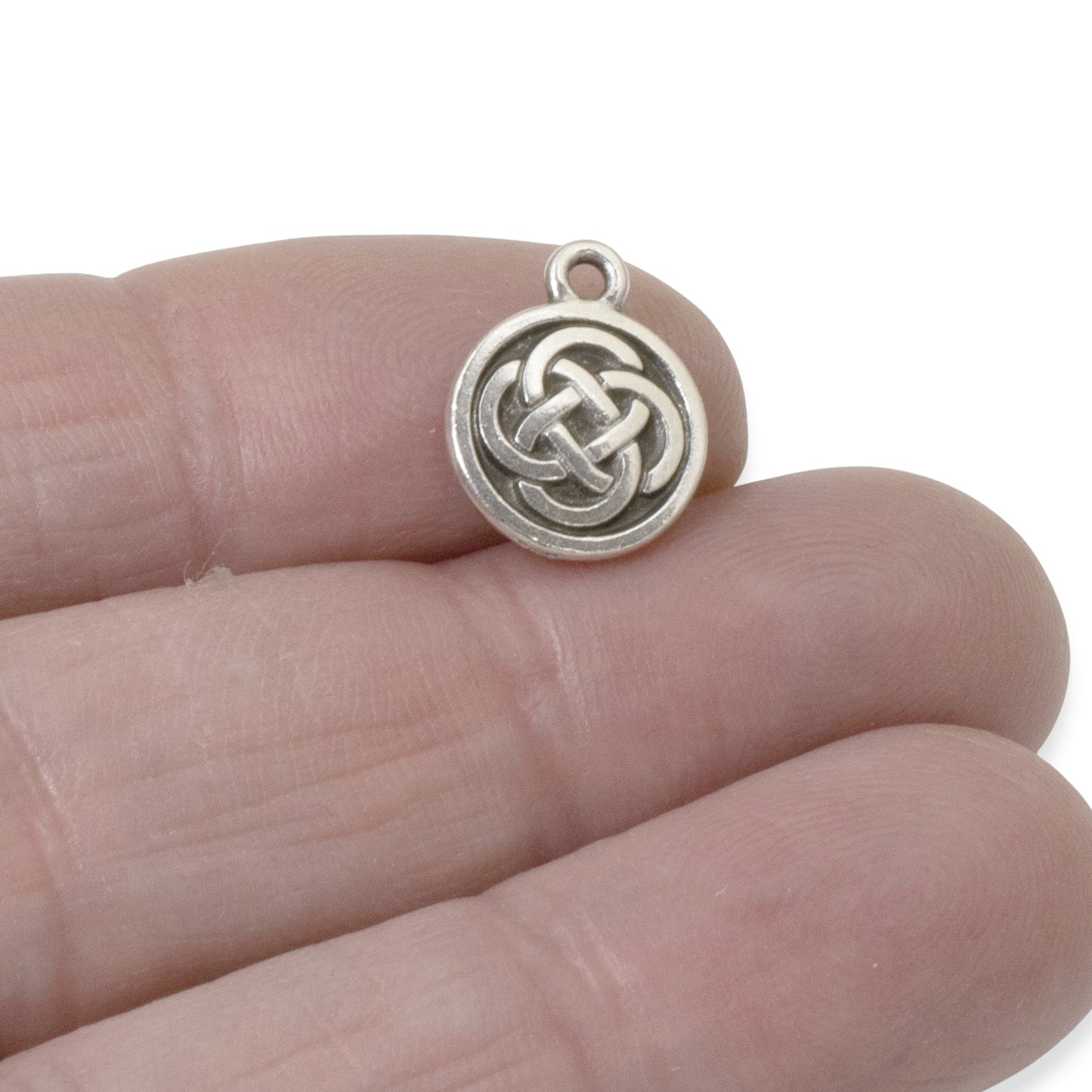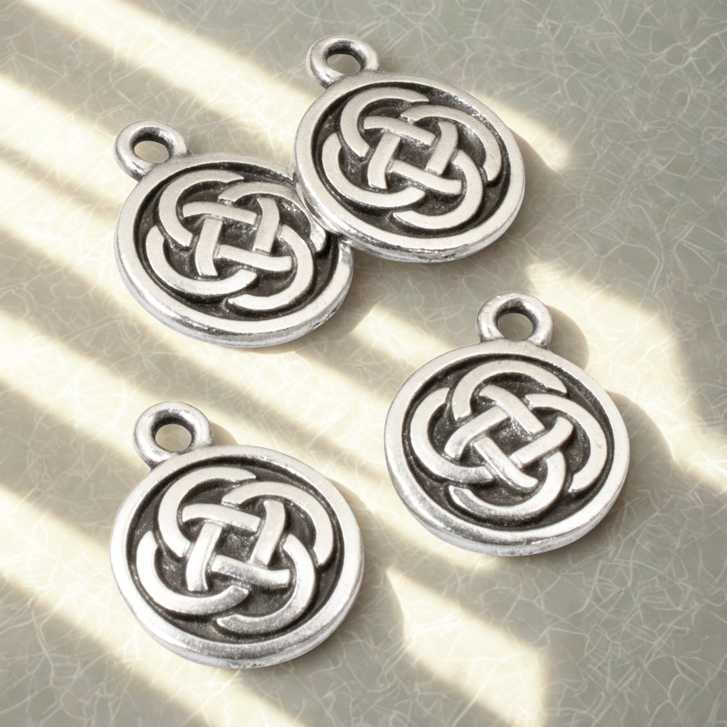 Silver Celtic Flat Round Charms, 4-Pack Petite Drops for Minimalist DIY Jewelry