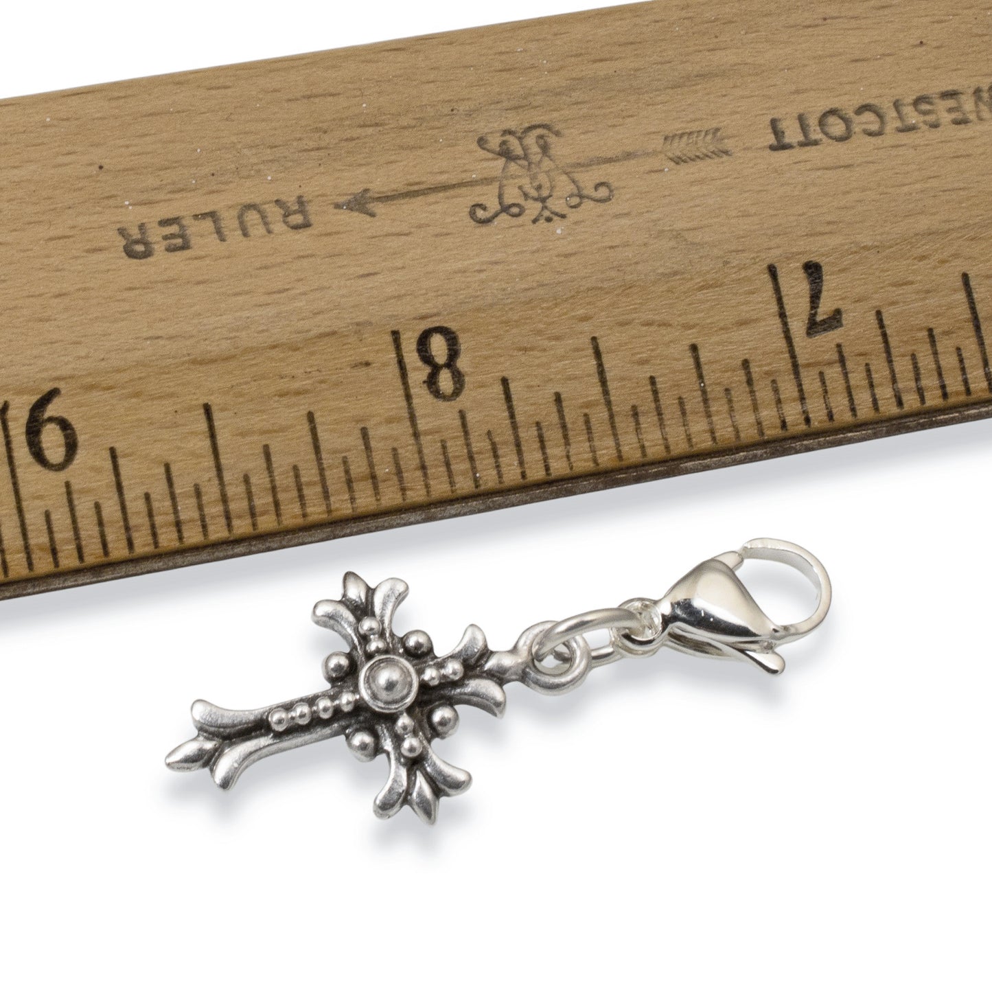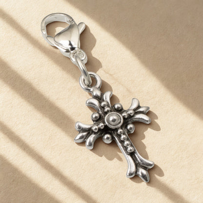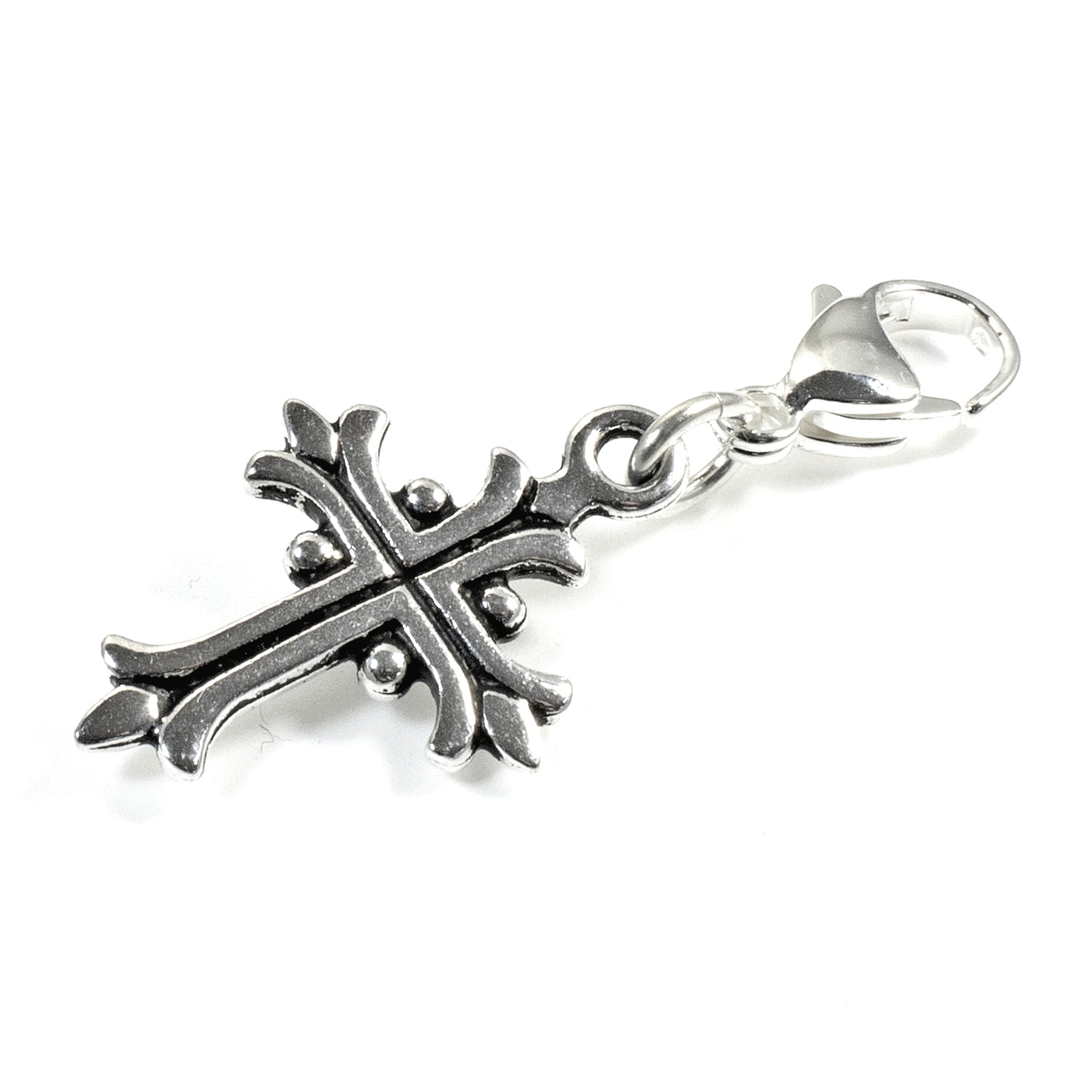 Silver Fleur Cross Clip-on Charm, Religious Bag Charm, Faith Jewelry + Lobster Clasp