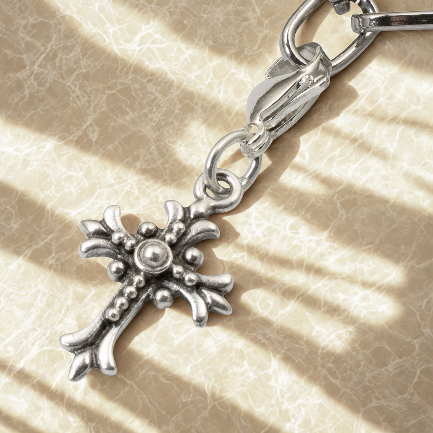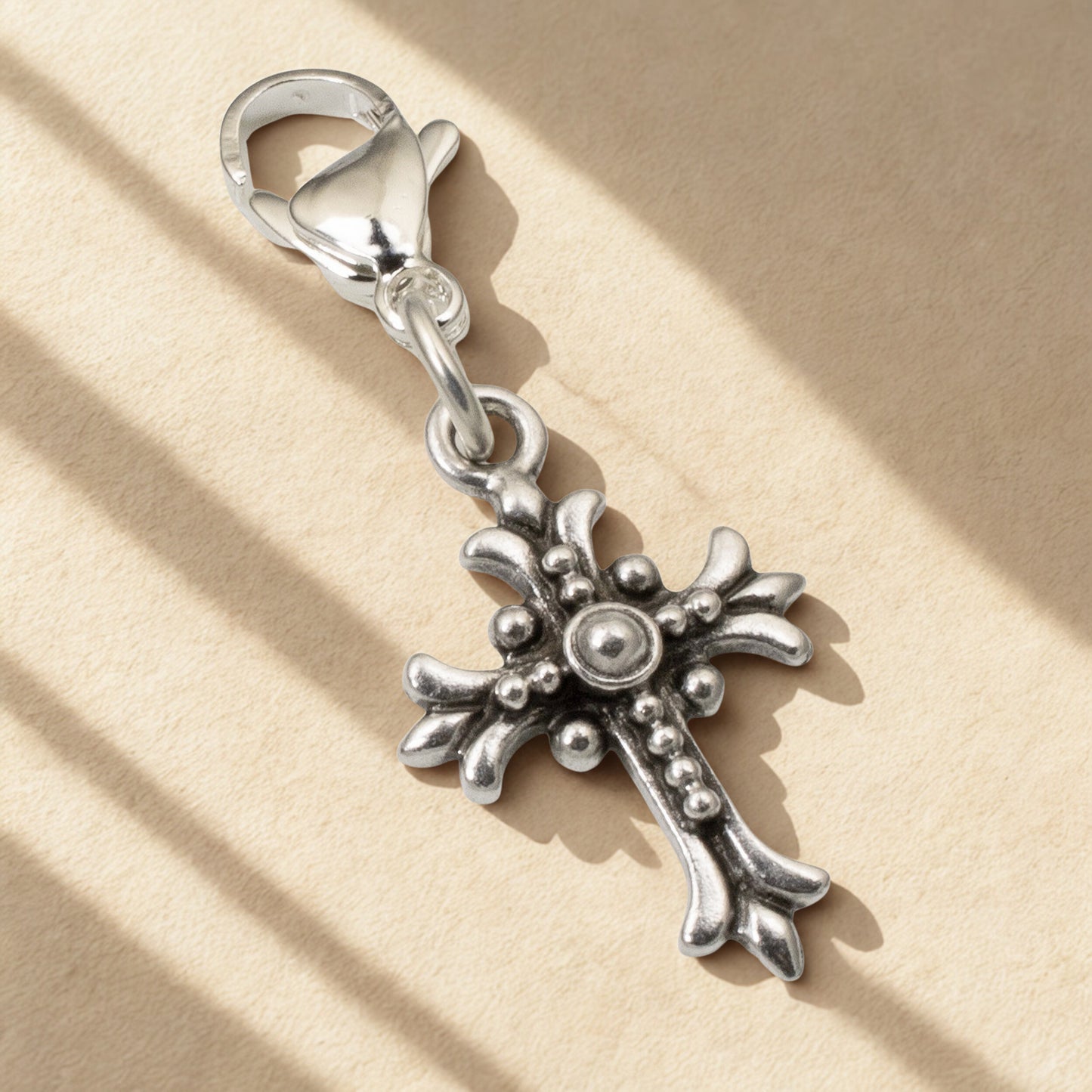Carry your faith wherever you go with this exquisite silver fleur cross charm! This beautifully detailed piece combines spiritual significance with elegant French-inspired design, creating a meaningful accessory for daily inspiration.