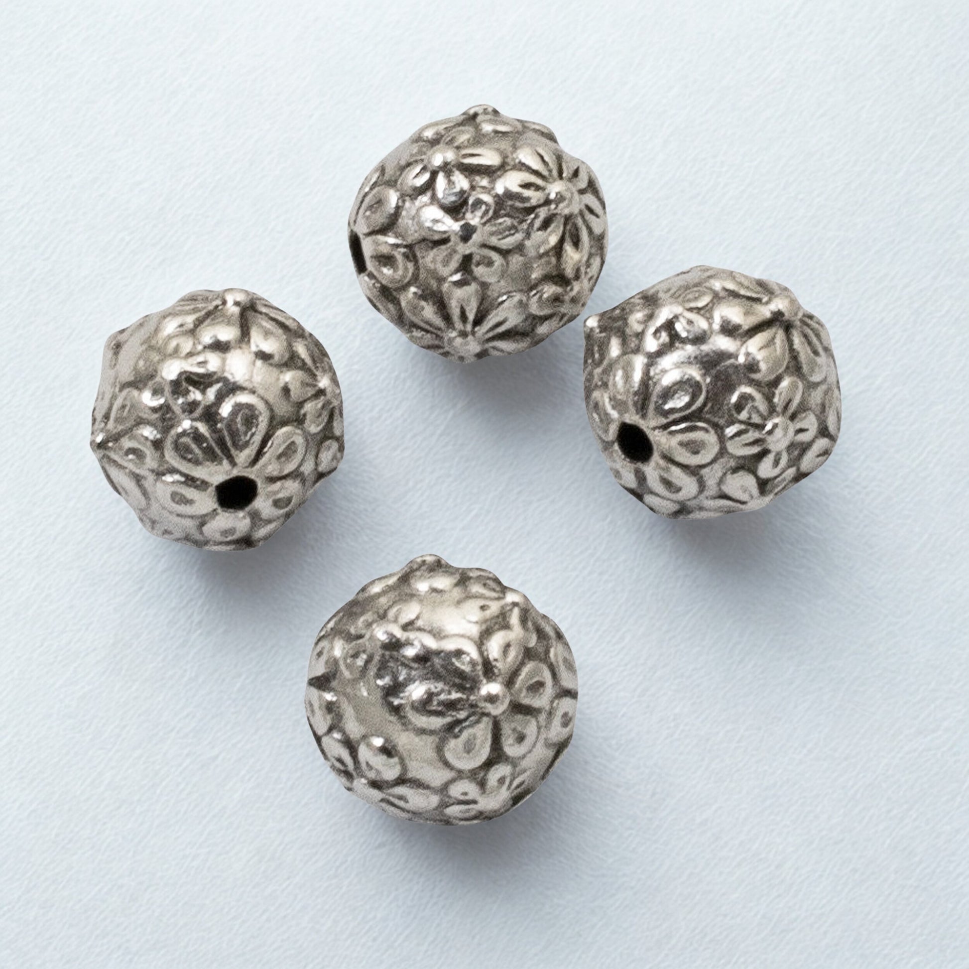 Silver Floral Beads 4-Pack 8mm TierraCast Wedding Nature Jewelry Making Supplies