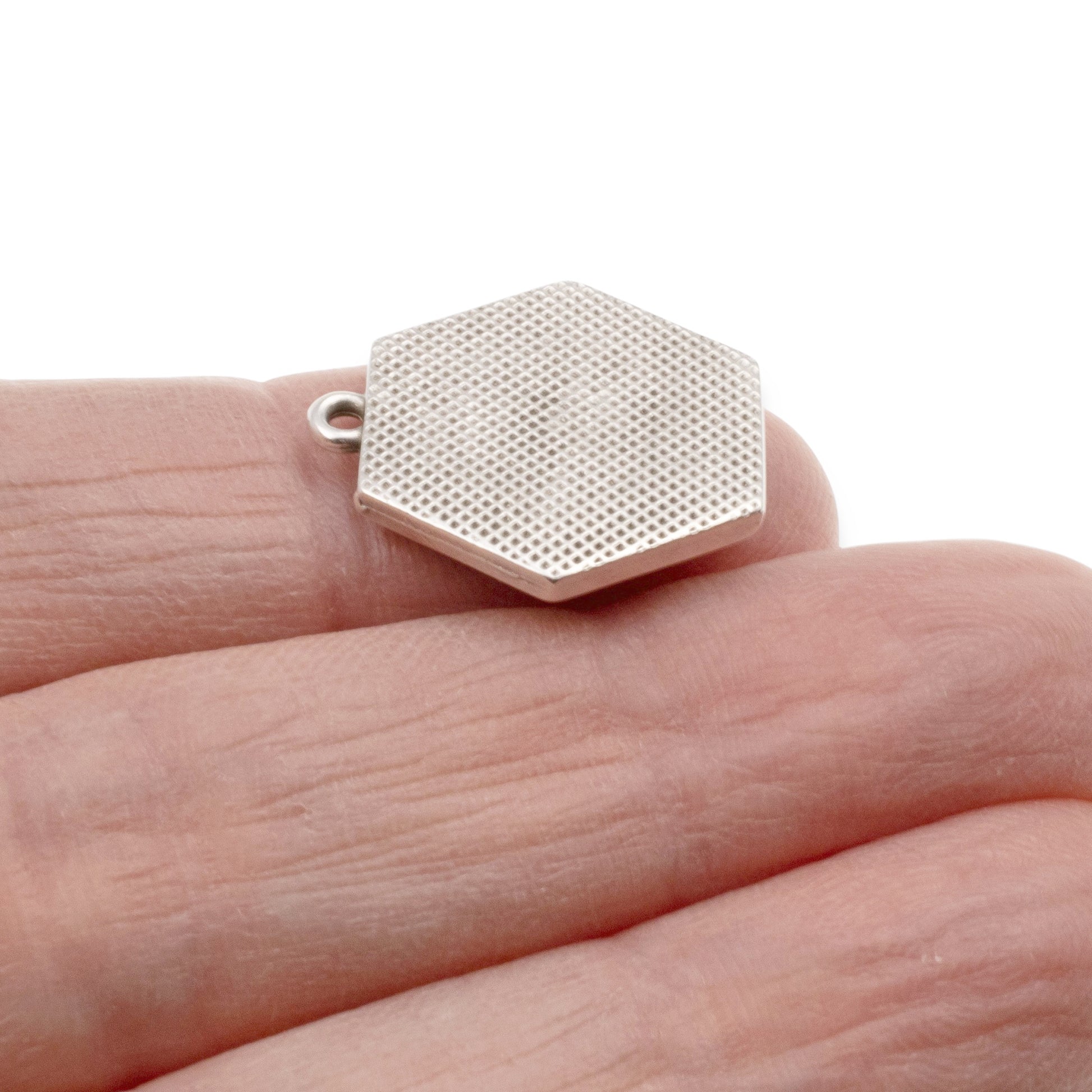 Celebrate nature's perfect harmony with these silver hexagon bee medallion charms. Perfect for spring jewelry making, garden-inspired accessories, and meaningful pieces that honor the essential work of pollinators.