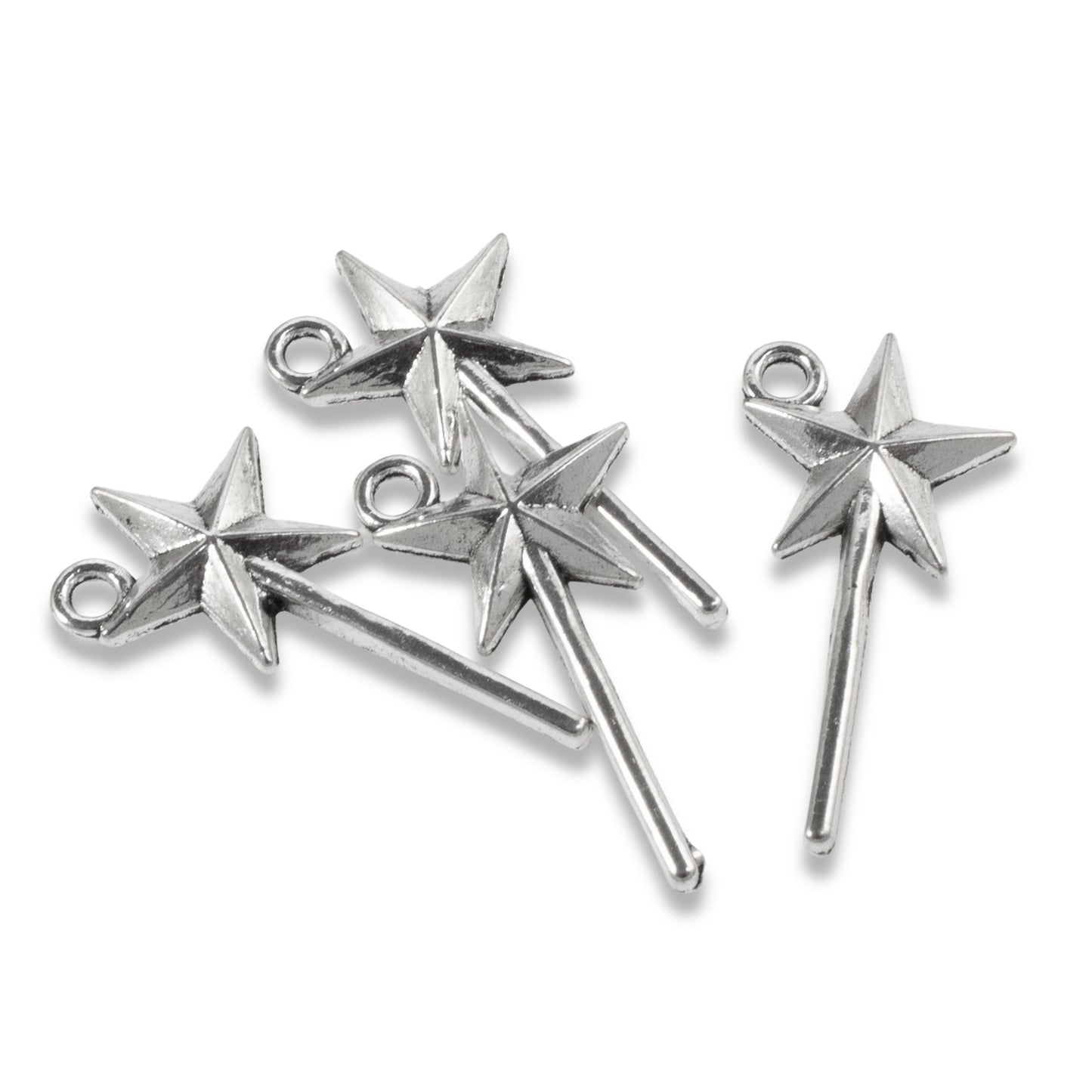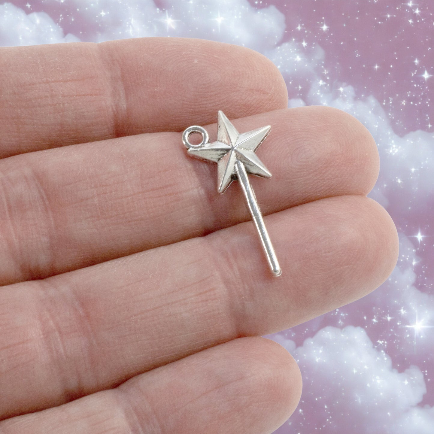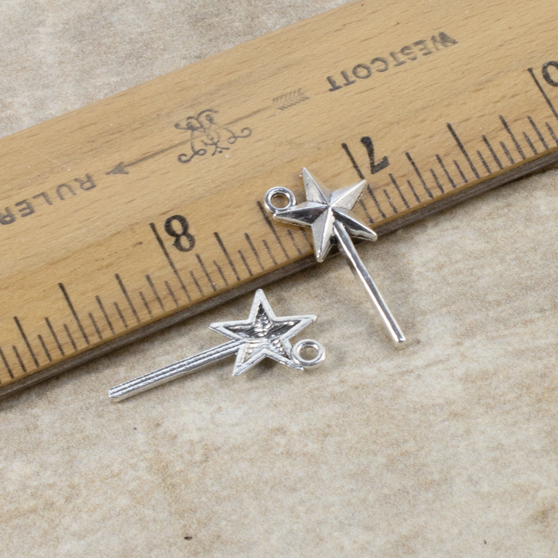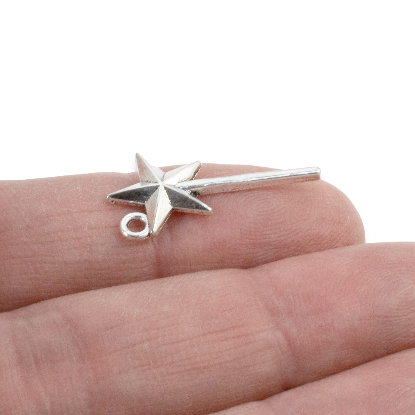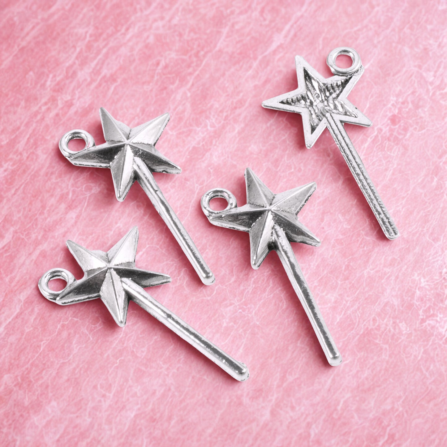 Silver Fantasy Wand Charms, 20-Pack Metal Star-Tipped Craft Components, DIY Jewelry Making Supplies, Gothic Cosplay Accessories