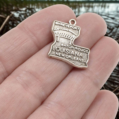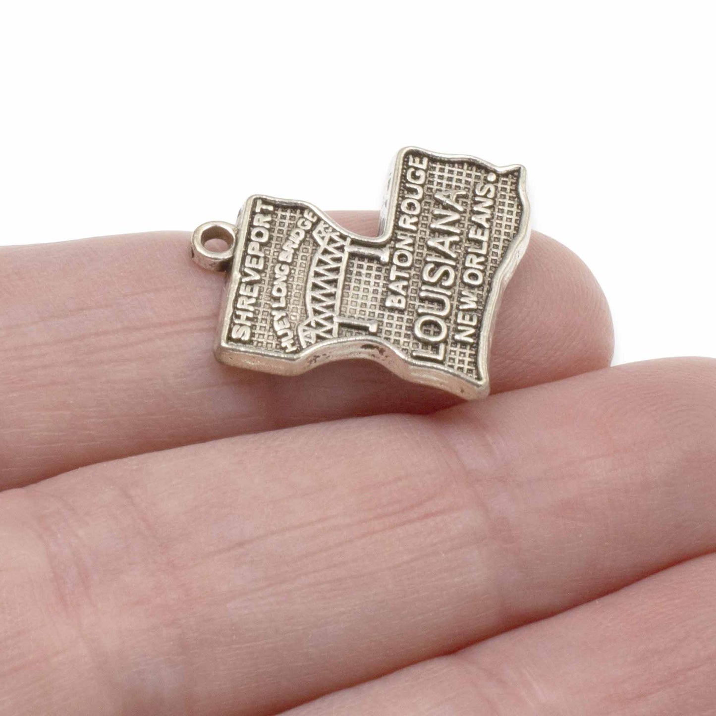 Louisiana State Pendants 8-Pack, Silver Metal Charms for Jewelry Making, Southern Travel Keepsake Gifts