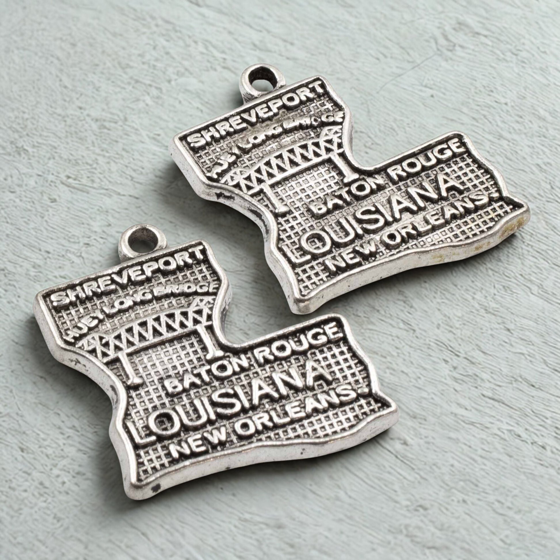 Celebrate Louisiana pride with these distinctive State of Louisiana pendants! This 8-pack of detailed silver metal charms captures the unique shape and spirit of the Bayou State, perfect for creating meaningful travel jewelry and regional keepsake gifts.