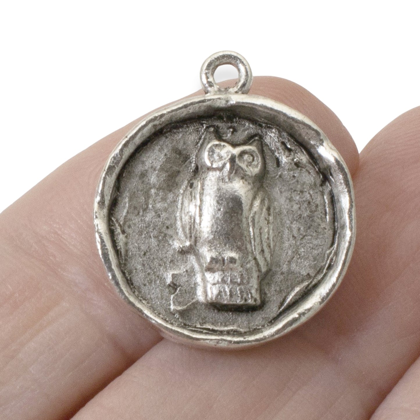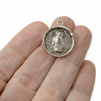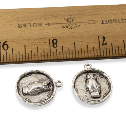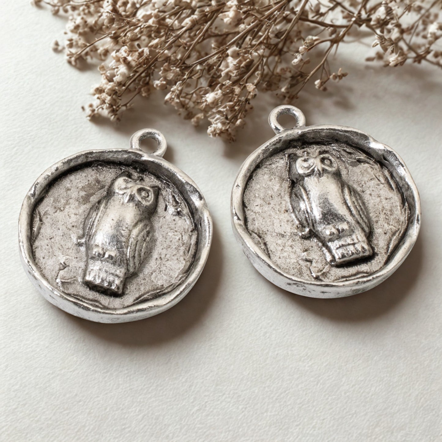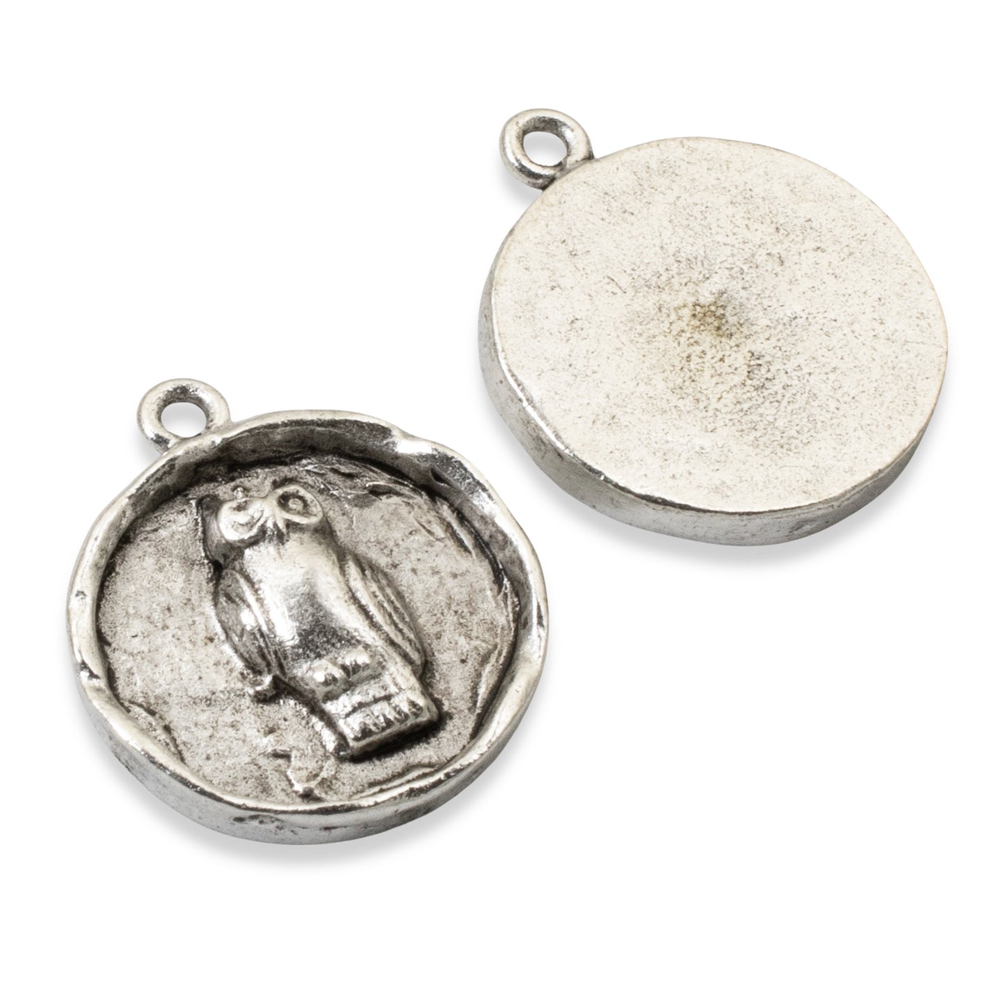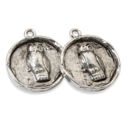 Create meaningful jewelry that celebrates wisdom, intuition, and the mystical beauty of nature's most enigmatic creature! These stunning silver owl charms feature an intricate raised medallion design that transforms any project into a treasured piece filled with ancient symbolism and spiritual significance.