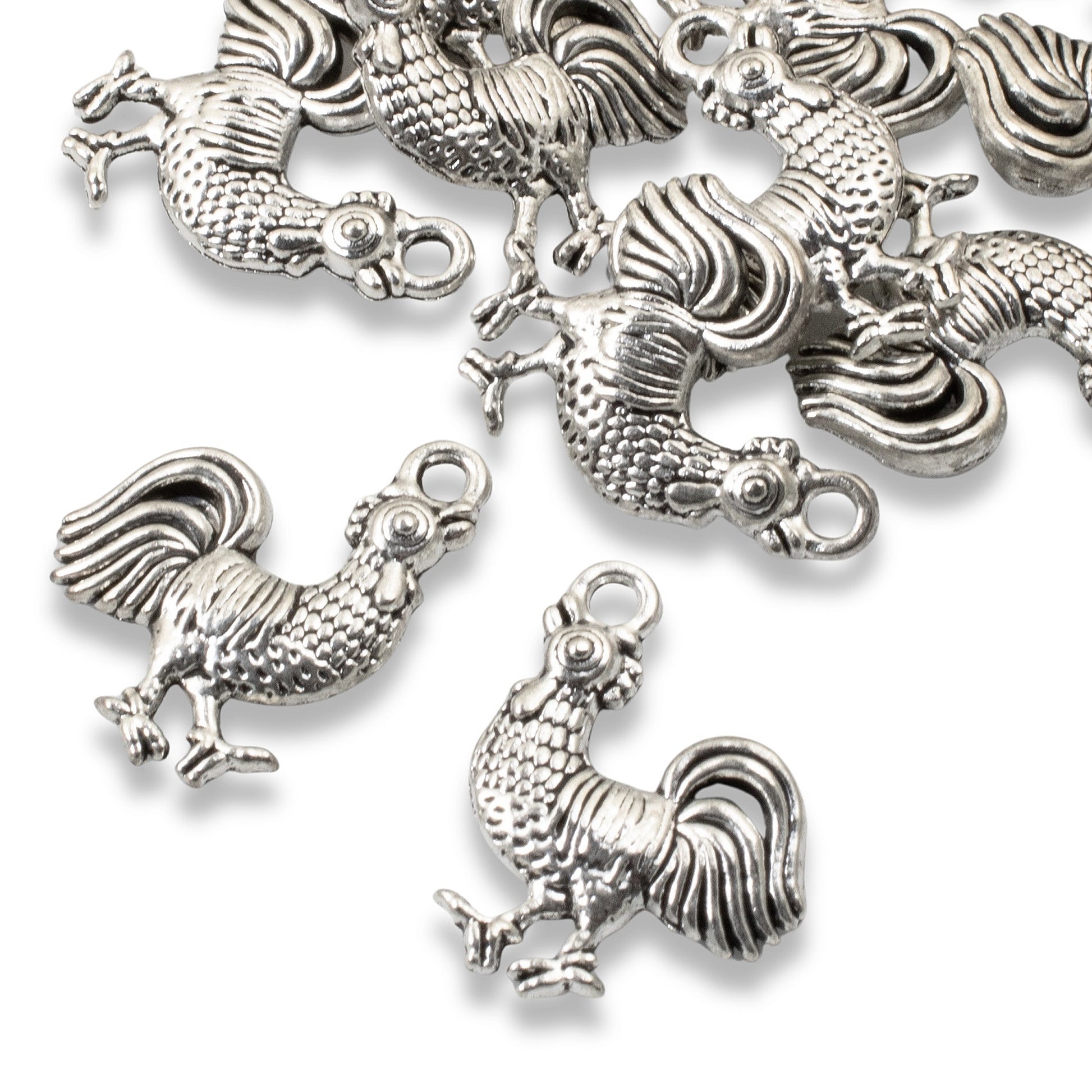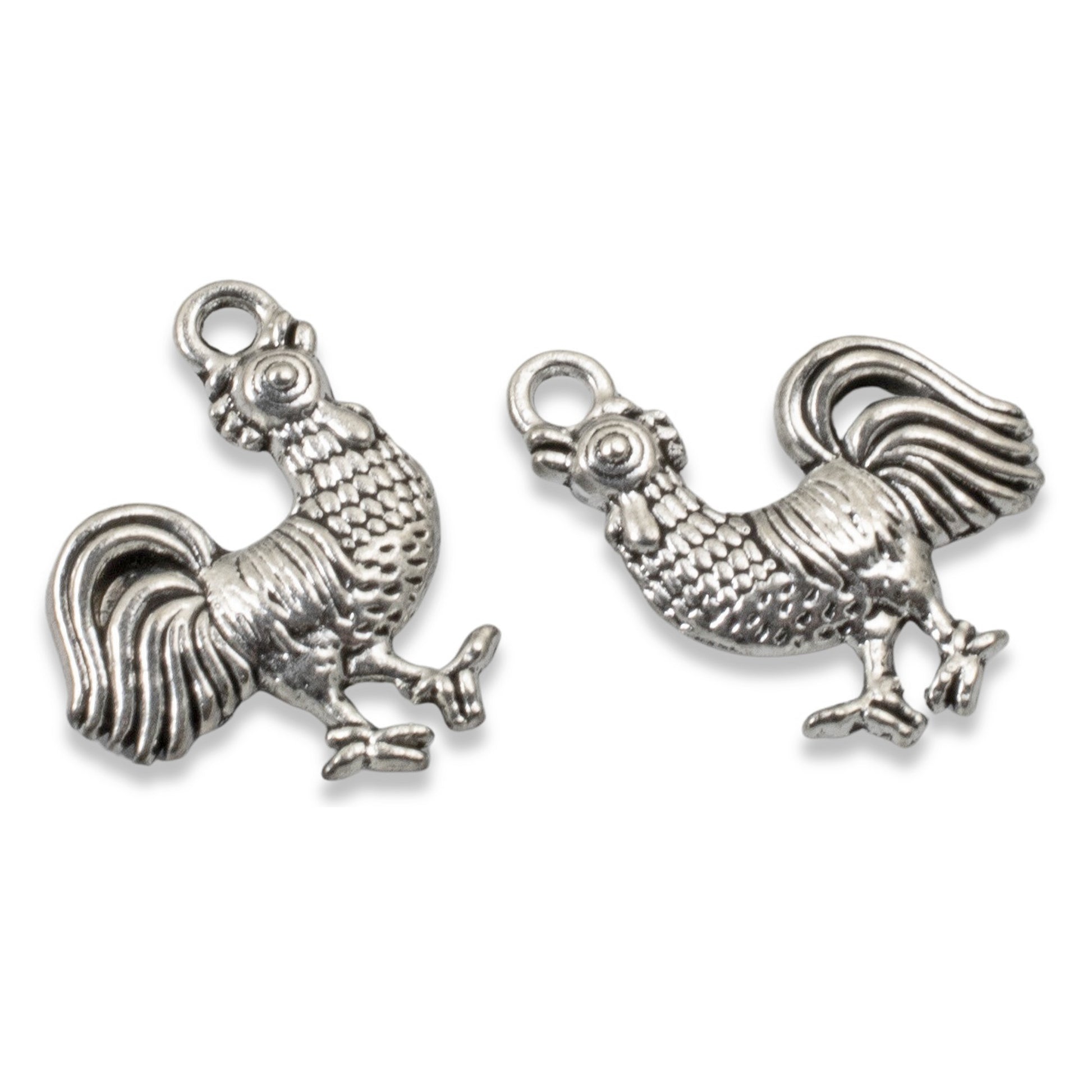 Every feather, comb, and tailfeather is meticulously crafted with professional attention to detail. The antique silver finish enhances each textural element, creating charms that look hand-forged and artisan-made rather than mass-produced.