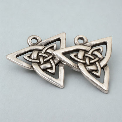 Silver Celtic Knot Triangle Pendants, 2-Pack Sacred Geometry for Statement Jewelry