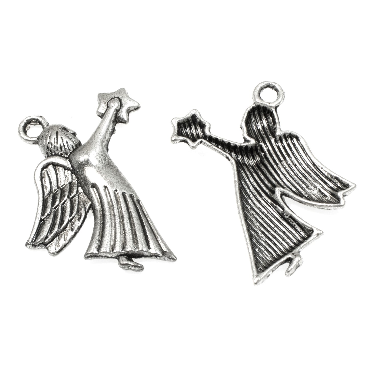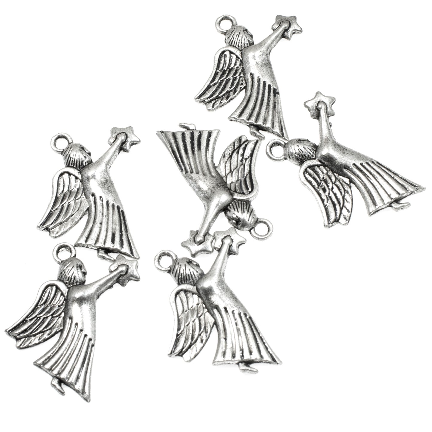These charms, featuring an angel gracefully holding a star, symbolize hope and joy. They are perfect for creating unique holiday-themed jewelry, ornaments, or decorations that resonate with the season's spirit.