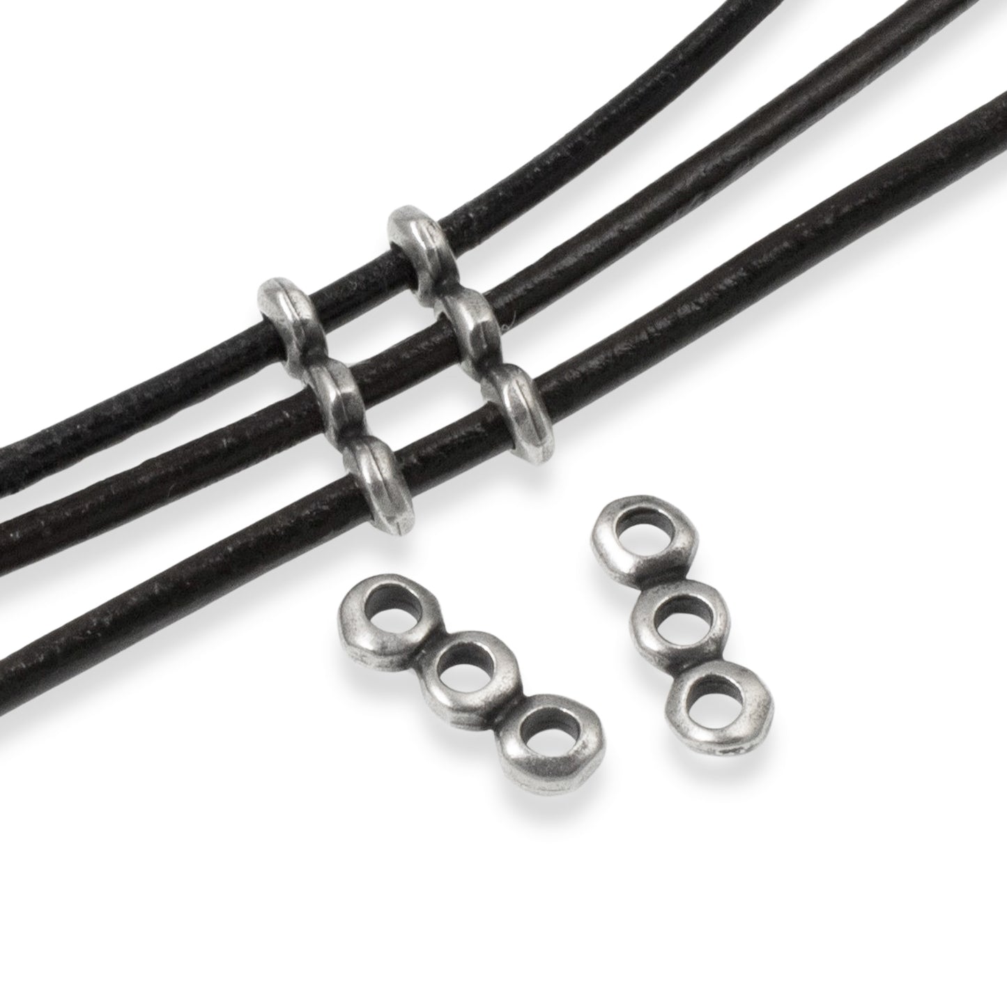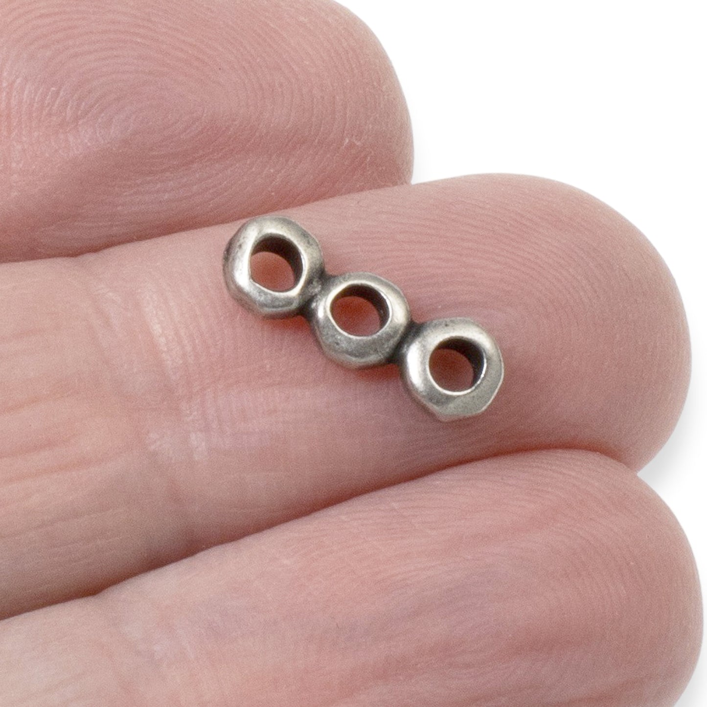 4 Pewter Nugget 3-Hole 5mm Spacer Bars, TierraCast Link for Multi-Strand Jewelry