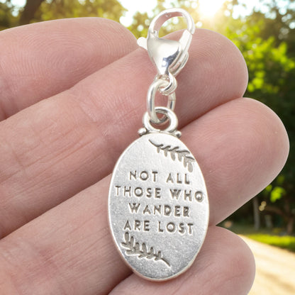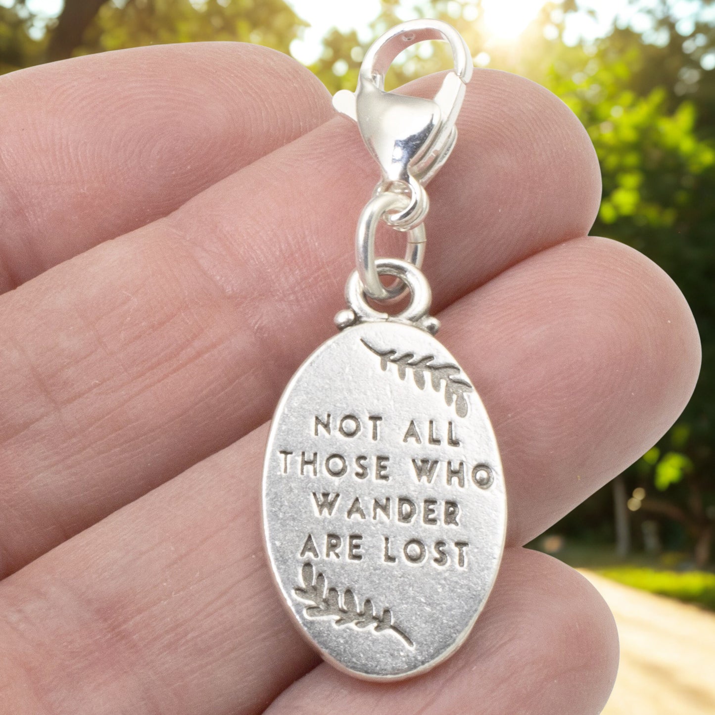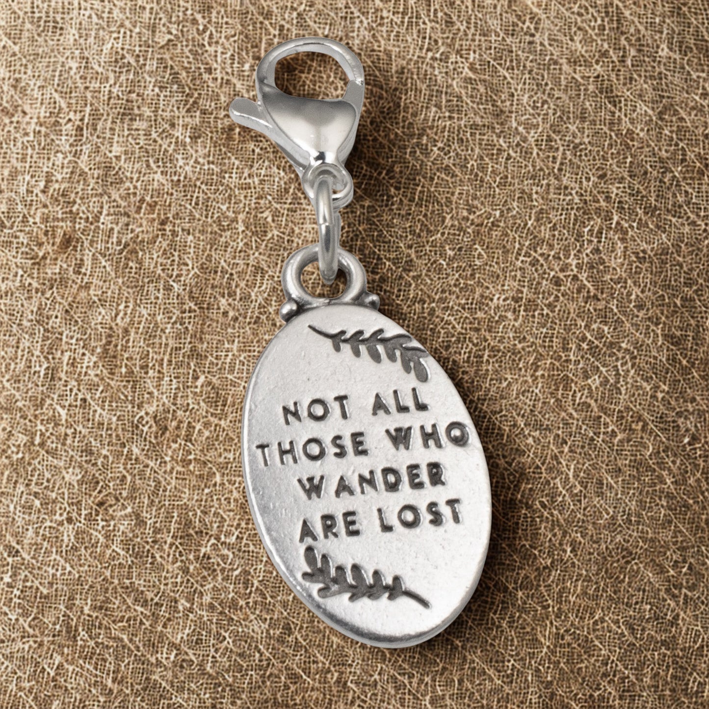 Wanderlust Redwood Tree Clip-On Charm, Adventure Quote, Not All Who Wander Lost, Travel Gift 1.75in
