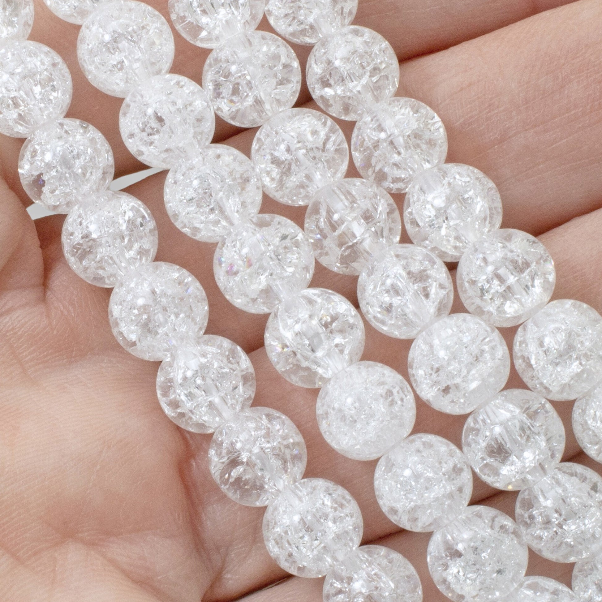 Winter Glass Beads, 8mm White Crackle Beads, Holiday Christmas Ornament DIY
