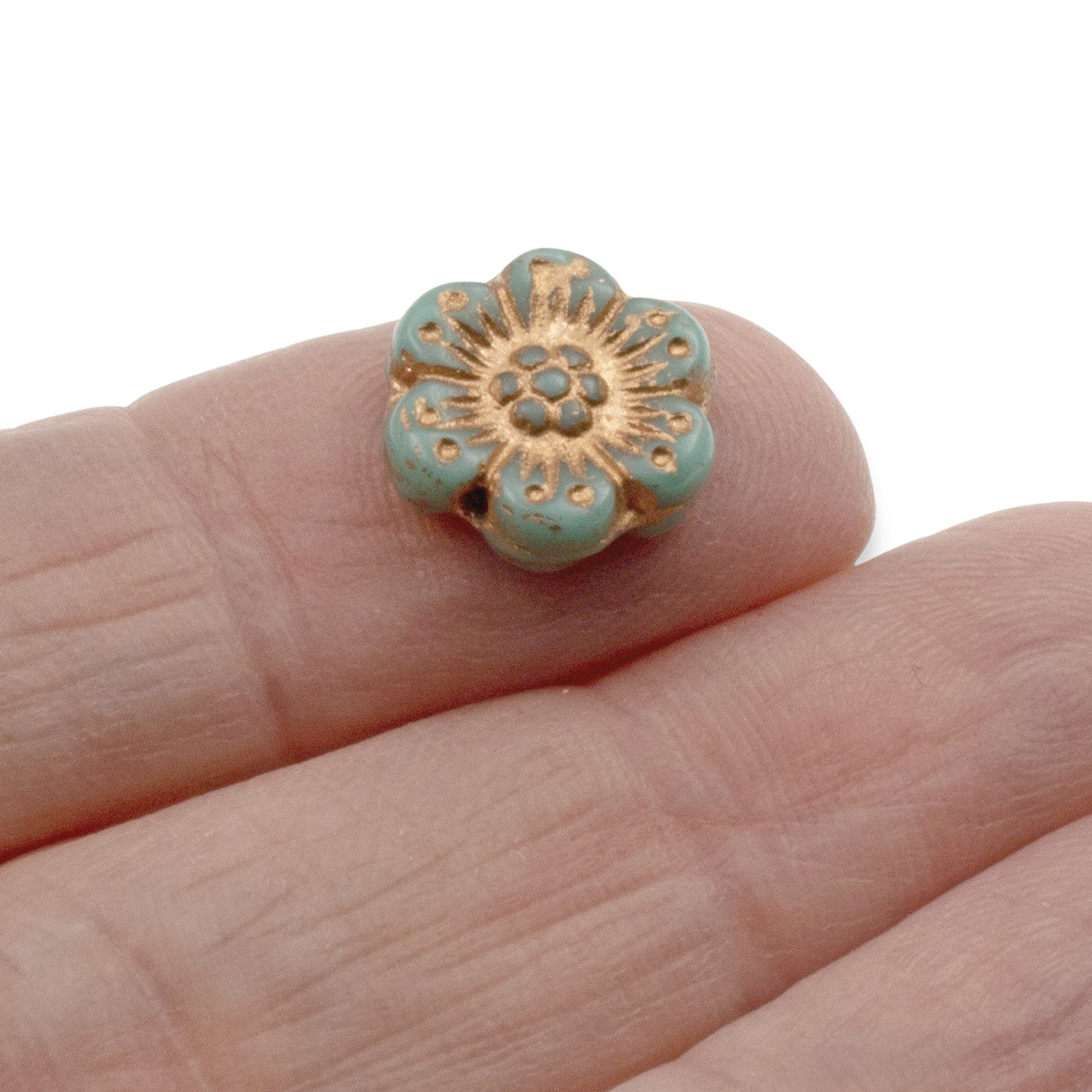Wild Rose Czech Glass Beads, 8-Pack Turquoise Copper Wash, 14mm Flower Beads